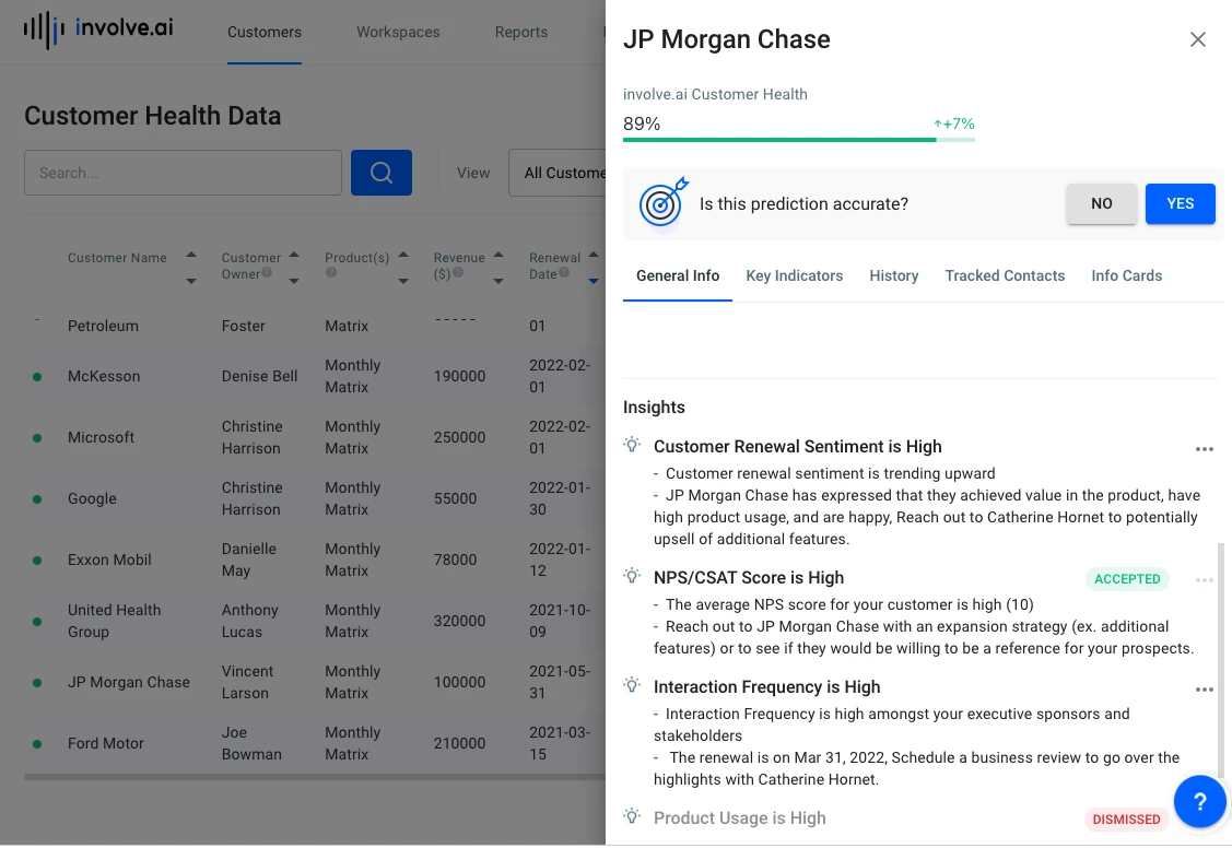 Every morning, check your involve.ai Customer Health Data dashboard. Set filters so as to view only your active book of business.